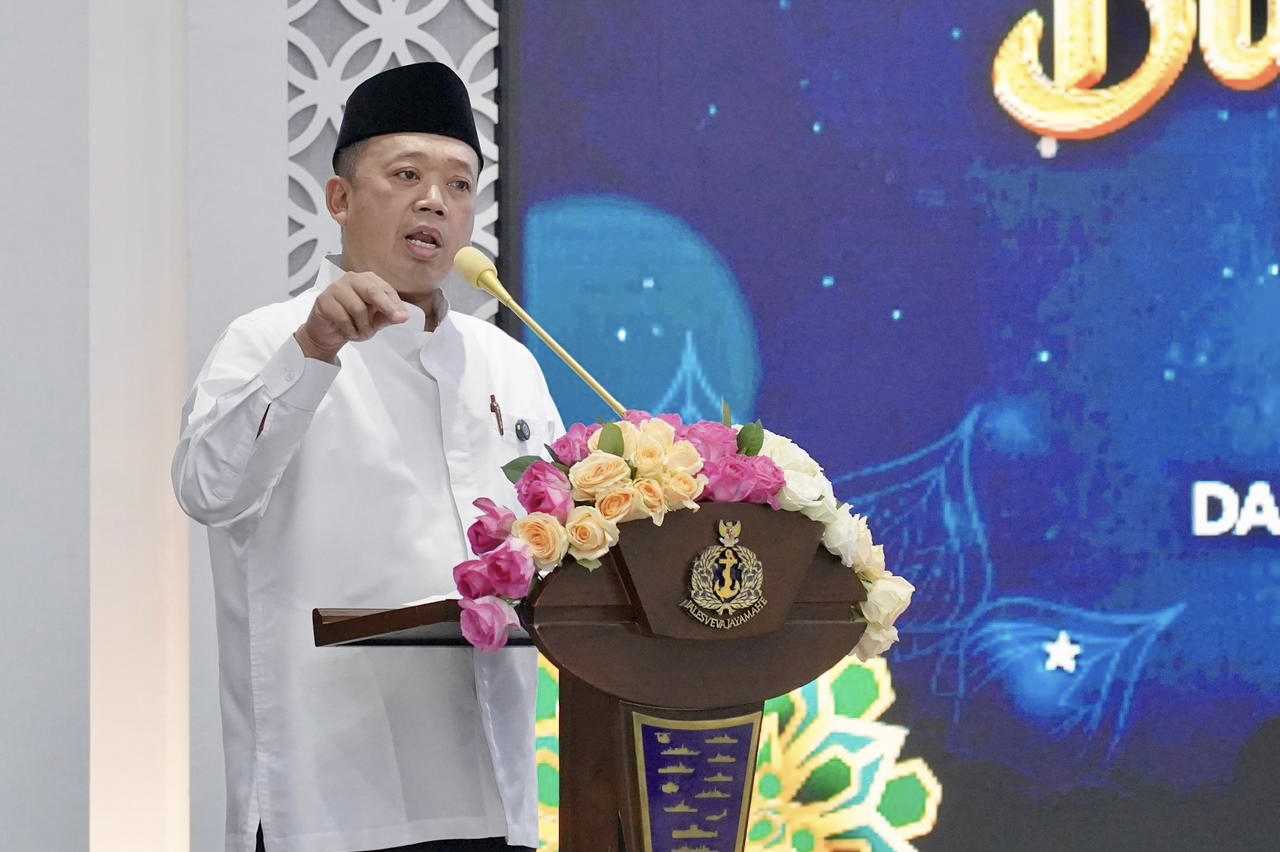 Acara Buka Bersama Kepala Staf AL ini juga dihadiri jemaah yang datang dari Pondok Pesantren Tarbiyatusshibyan Bogor. Acara dimulai dengan pemberian santunan kepada santriwan/santriwati dari Pondok Pesantren Tarbiyatusshibyan Bogor dan diikuti penyampaian tausiah oleh Menteri Nusron. Setelah adzan berkumandang, jemaah menyantap hidangan berbuka dan langsung melaksanakan salat magrib berjemaah. Dalam acara ini, turut hadir Wakil Kepala Staf AL, Laksdya TNI Erwin S. Aldedharma; serta para Pejabat Utama TNI AL. (Ahlit*)