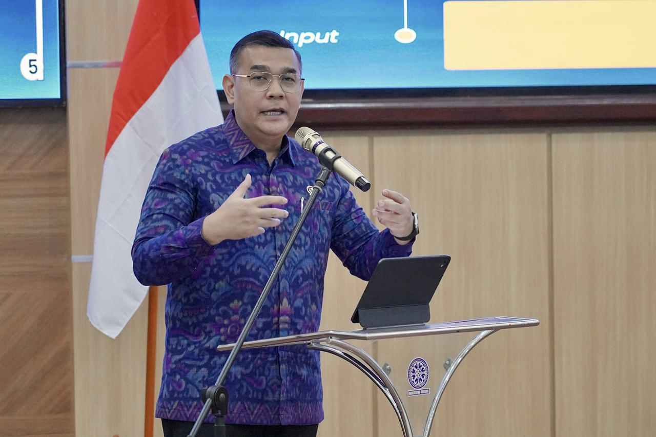“Digitalisasi bukan sekadar mengganti dokumen kertas dengan dokumen digital. Transformasi ini juga menyangkut perubahan cara kerja, perubahan proses bisnis, dan perubahan budaya organisasi,” tegas Wamen Ossy di Aula Lecture Building, Universitas Udayana, Bali.