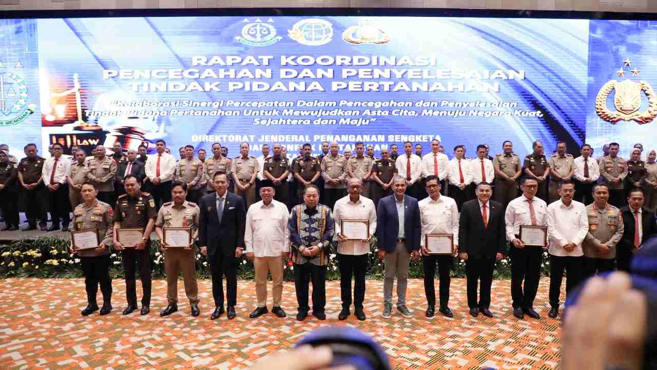 Dalam kesempatan ini, Menteri Nusron menyematkan pin emas dan memberikan piagam kepada total 74 pihak yang ikut menyukseskan pencegahan serta penyelesaian tindak pidana pertanahan. Pemberian piagam penghargaan dan penyematan emas diwakili oleh enam perwakilan.