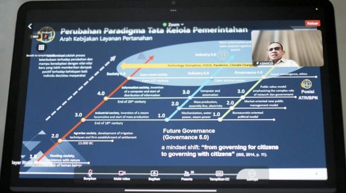 “Mulai tahun 2028, layanan pertanahan diharapkan sudah fully digital dengan penerapan blockchain pertanahan dan smart contract,” kata Asnaedi pada diskusi yang mengangkat tema Peran Strategis Generasi Z dalam Inovasi dan Keadilan Pertanahan Menuju Transformasi Agraria di Era Society 5.0.