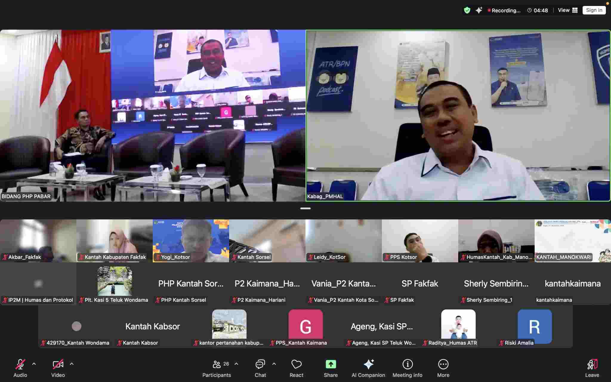 Pada Rakerda yang diikuti oleh Kepala Bagian Tata Usaha Kanwil BPN Provinsi Papua Barat, Irwan, serta seluruh jajaran Kanwil BPN Provinsi Papua Barat secara daring dan luring, Kabag PMHAL menjelaskan bahwa owned media berupa kanal resmi Kanwil dan Kantah diharapkan dapat dimaksimalkan sebagai sarana publikasi kegiatan dan sosialisasi yang diproduksi secara mandiri, guna memperkuat komunikasi kelembagaan.