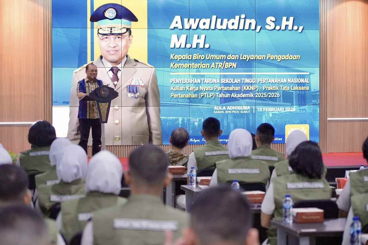“Ketika kalian membantu kami merestorasi arsip pascabencana, sejatinya kalian itu sedang ikut menjaga ingatan negara dan memastikan pelayanan pertanahan berjalan dengan baik, tertib, akuntabel dan berkelanjutan,” ujar Awaludin saat menyambut kehadiran taruna/i di Aula Adhiguna, Kantor Wilayah (Kanwil) BPN Provinsi Sumatera Utara, Medan, Selasa (10/02/2026).