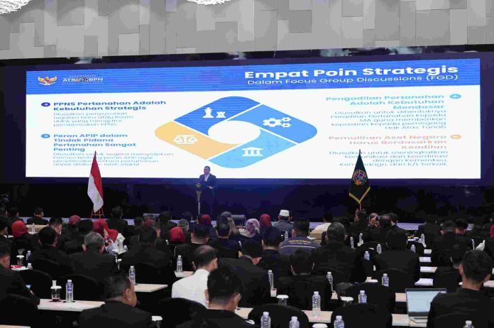 Morotai, Koridorindonesia.id– Wakil Menteri Agraria dan Tata Ruang/Wakil Kepala Badan Pertanahan Nasional (Wamen ATR/Waka BPN), Ossy Dermawan, menegaskan pentingnya keberlanjutan dalam memperkuat langkah pencegahan dan penyelesaian tindak pidana pertanahan. Dalam penutupan Rapat Koordinasi (Rakor) Pencegahan dan Penyelesaian Tindak Pidana Pertanahan Tahun 2025, ia menyampaikan empat poin strategis yang perlu mendapat perhatian, yaitu penguatan Penyidik Pegawai Negeri Sipil (PPNS) Pertanahan, optimalisasi peran APIP, kebutuhan pembentukan pengadilan pertanahan, serta pemulihan aset negara yang berlandaskan prinsip keadilan.