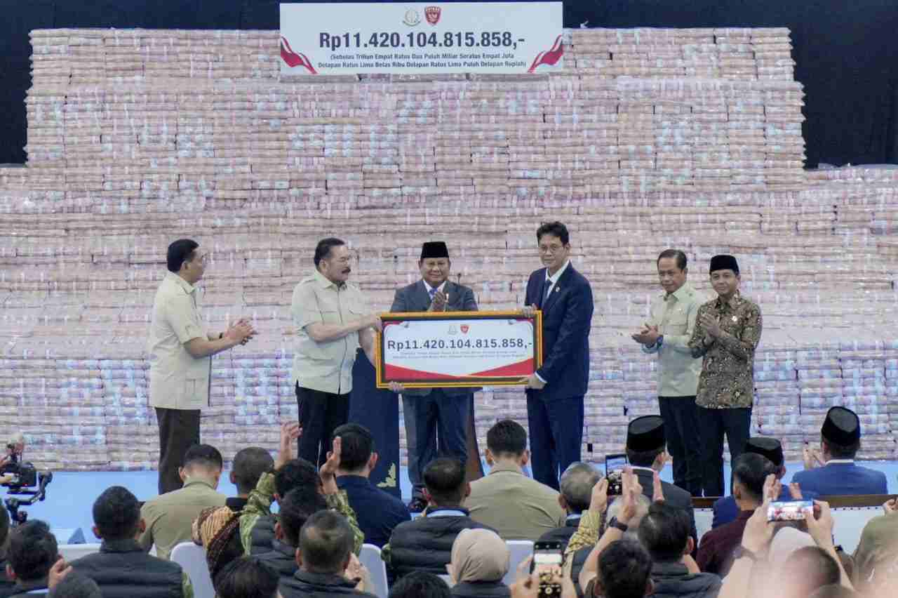 “Mewakili Bapak Menteri Nusron, menghadiri acara penyerahan denda administratif yang dilakukan Satgas PKH dengan nilai sekitar Rp11,42 triliun. Bersyukur dapat melaksanakan apa yang menjadi harapan Bapak Presiden, harapan dari masyarakat, agar kekayaan negara serta sumber daya alam yang kita miliki ini bisa sebesar-besarnya dimanfaatkan untuk rakyat,” tutur Wamen Ossy di Komplek Kejaksaan Agung, Jakarta, usai kegiatan berlangsung.